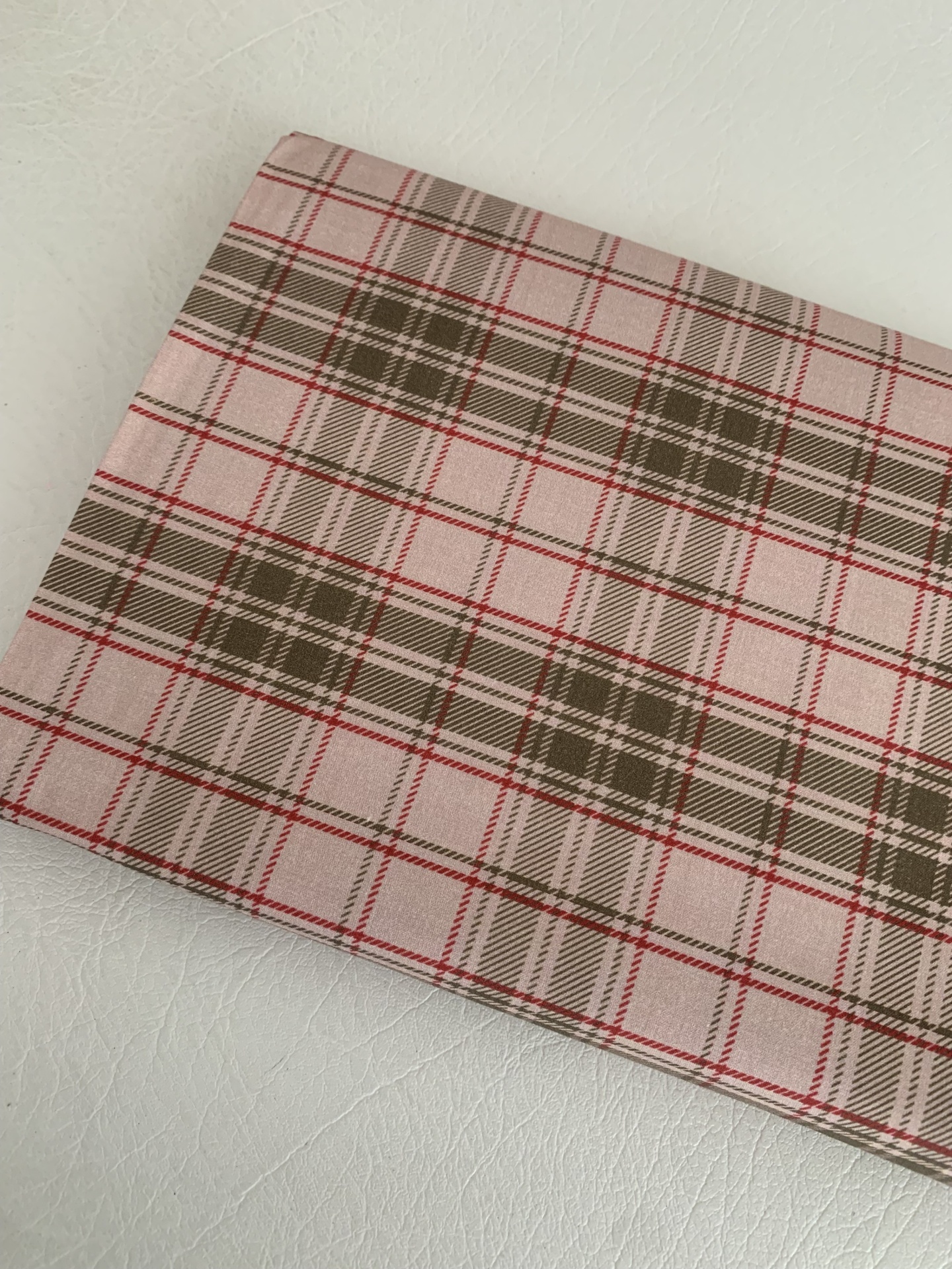Tricoline 100% algodão com quadrados em tons de bege e verde seco.