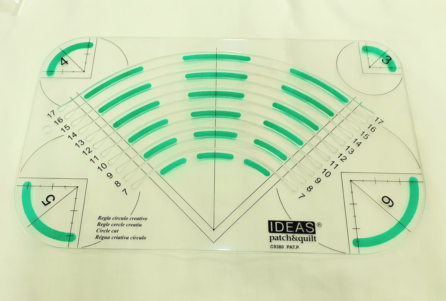 Régua para cantos e círculos 22,00 € Partilhar Adicionar Contactar 1 unidades em stock Régua acrílica para cantos e círculos Marcações para cantos e círculos a partir de 3cm até 17cm Ideal para usar com base de corte e cortador rotativo