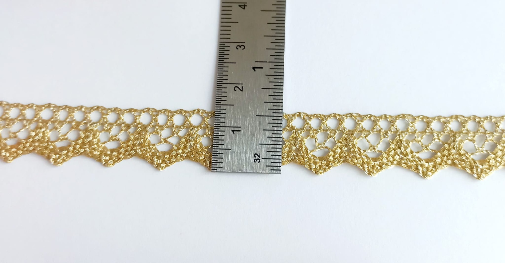 Renda Dourada R-201 0,01 € Partilhar O produto encontra-se sem stock. Renda em dourado. 14mm Ideal para ponta de costuras, bainhas, decoração etc. Corte mínimo 20cm Tags bainhascosturadecoracão