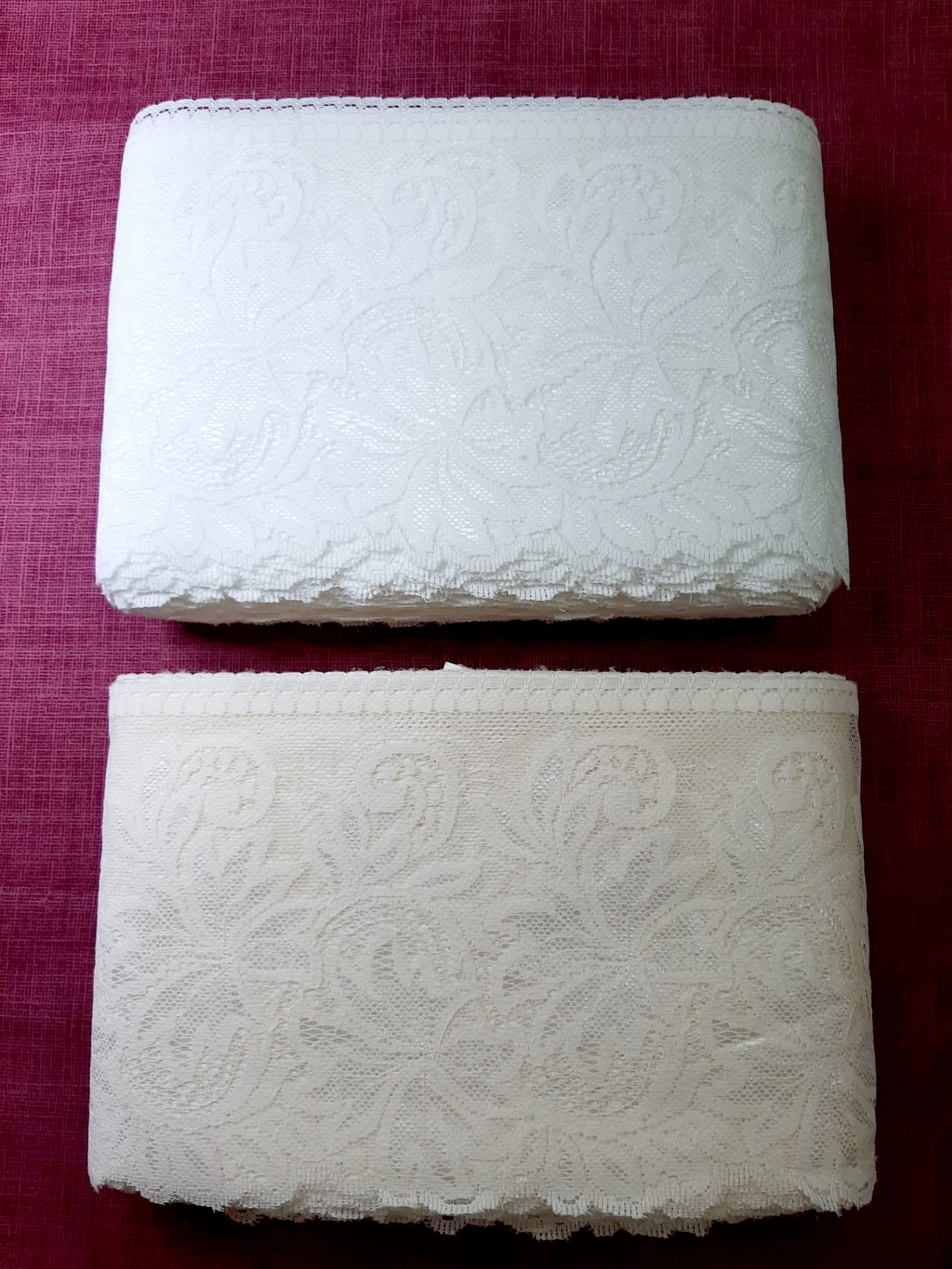 Renda fina com folhas e cornucópias 0,02 € Partilhar Cor Branco Bege Adicionar Contactar 300 unidades em stock Ponta de renda fina com folhas e cornucópias. 135 mm Corte mínimo 20cm