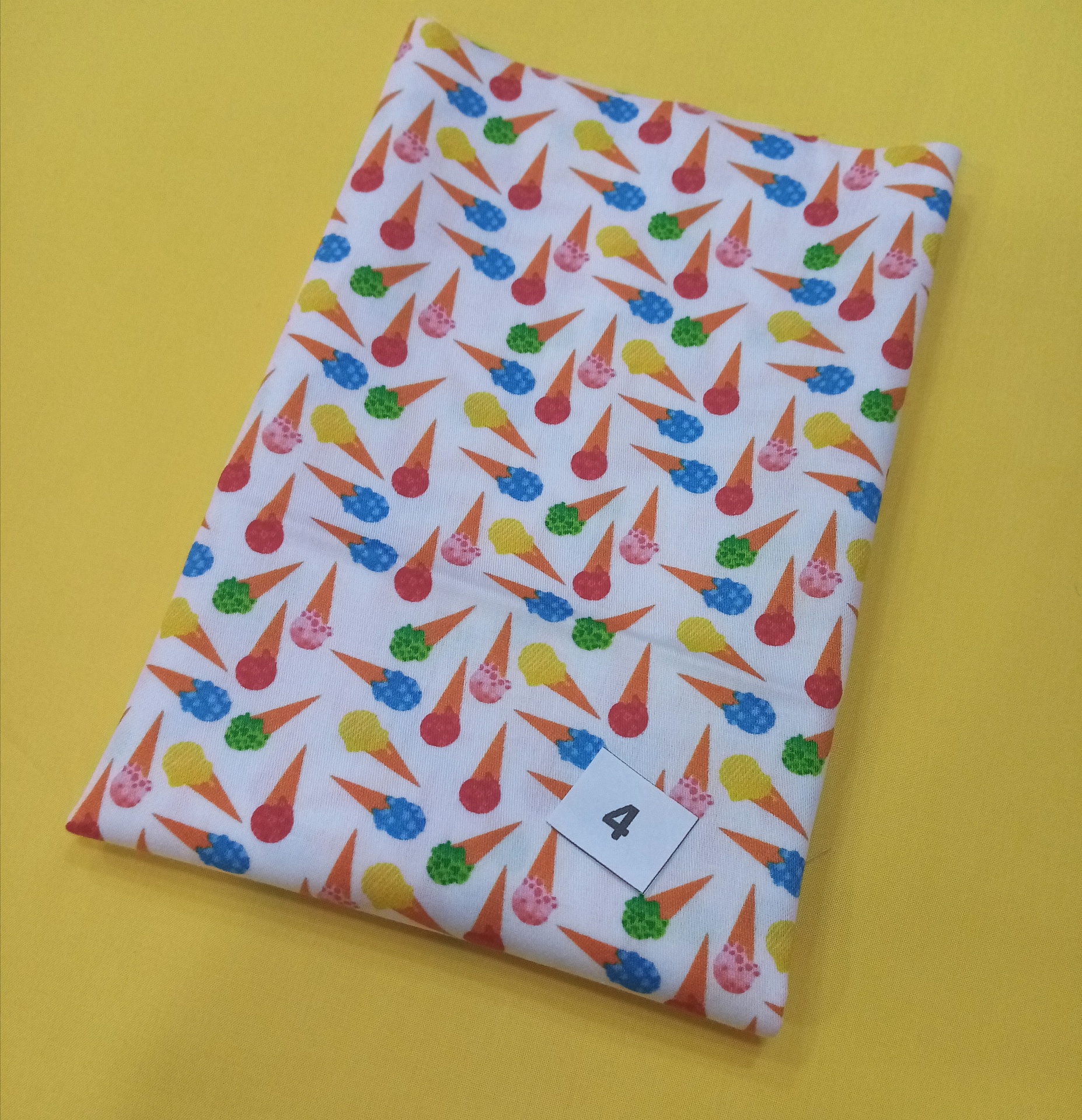 Retalho nº 4 medida: 20x75cm 1,30 € Partilhar Adicionar Contactar 2 unidades em stock Retalho de tecido 100% algodão, com gelados coloridos em fundo branco. 20x75cm Tags retalhos