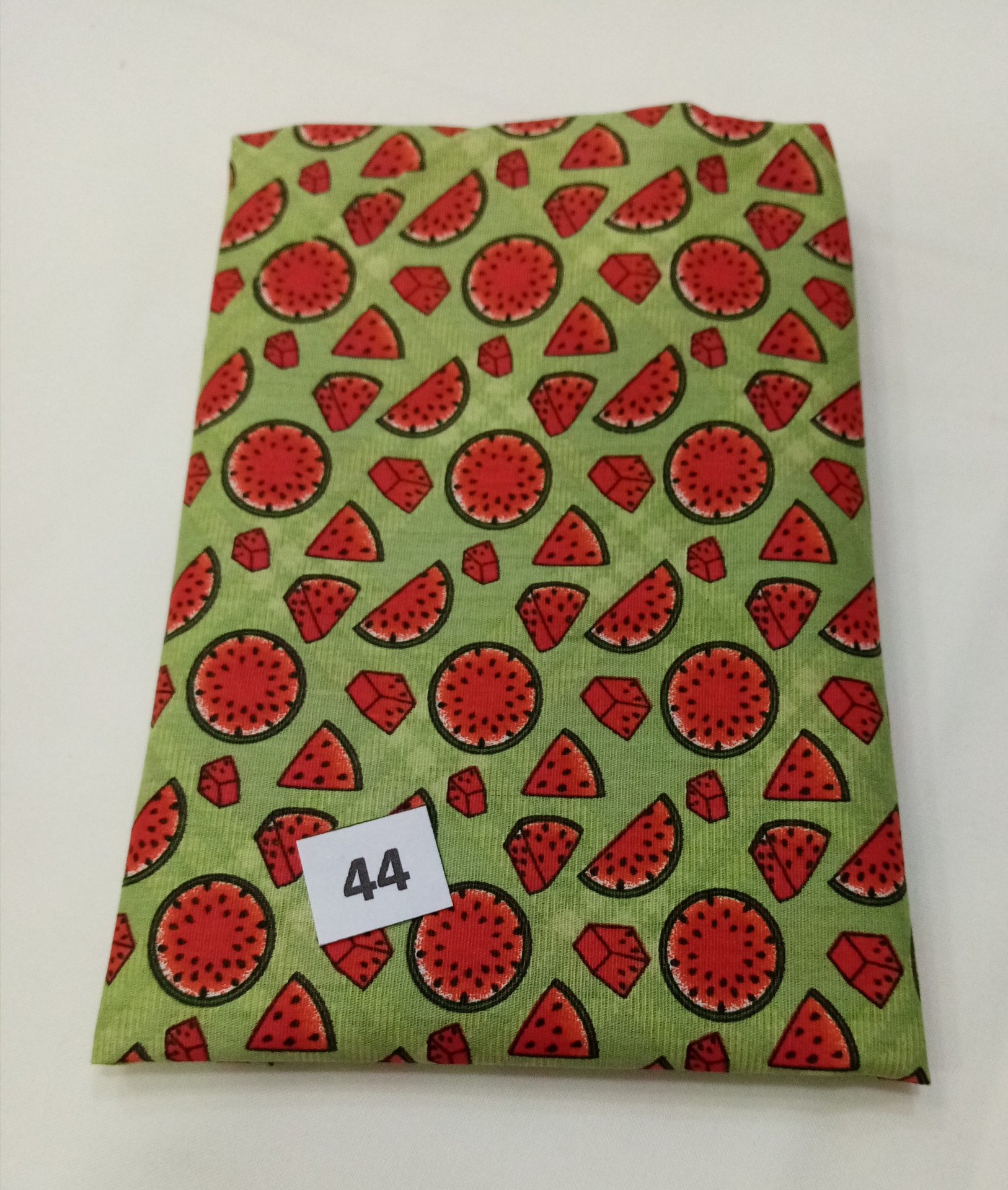 Retalho nº 44 medida: 20x75cm 1,40 € Partilhar Adicionar Contactar 2 unidades em stock Retalho de tecido 100% algodão Fabricart, com cortes de melancia em fundo verde. 20x75cm Tags retalhos