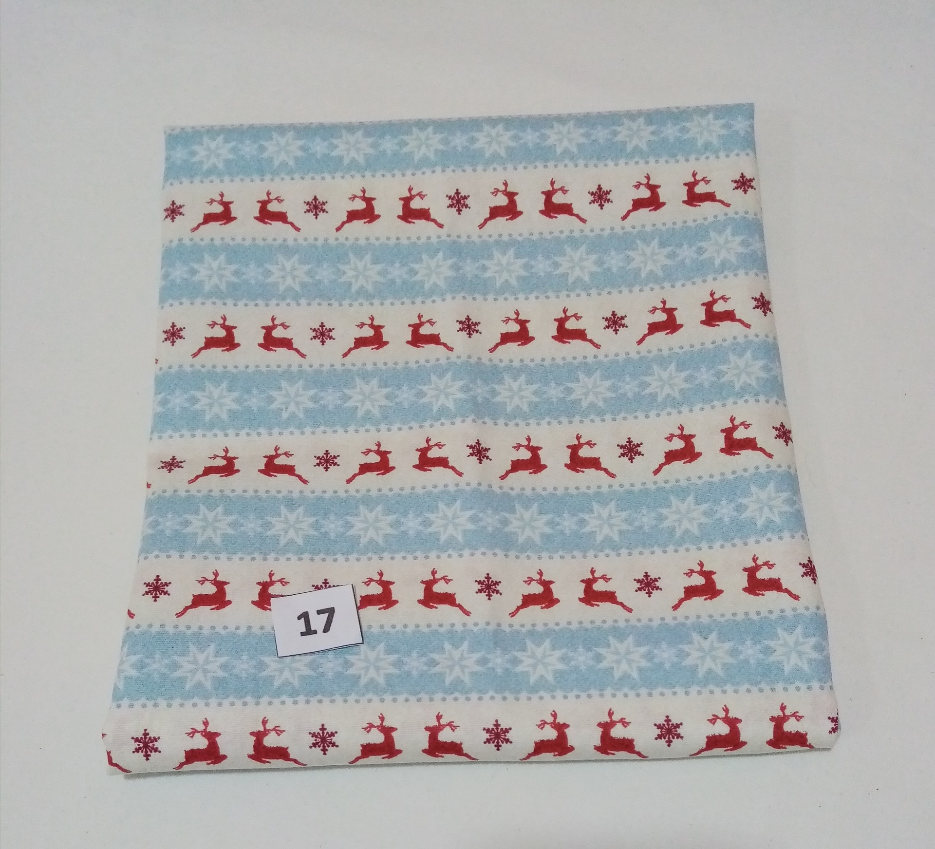 Retalho nº17 medida: 35x75cm 2,50 € Partilhar Adicionar Contactar 2 unidades em stock Retalho de tecido 100% algodão com renas em riscas pérola e azul. 35x75cm Tags retalhos
