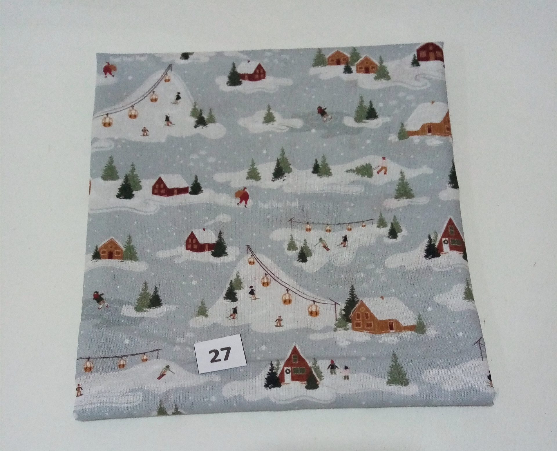 Retalho Nº27 Medida: 35x70cm 1,95 € Partilhar Adicionar Contactar 2 unidades em stock Retalho de tecido 100% algodão com cabanas na neve em fundo cinza. 35x70cm Tags retalhos