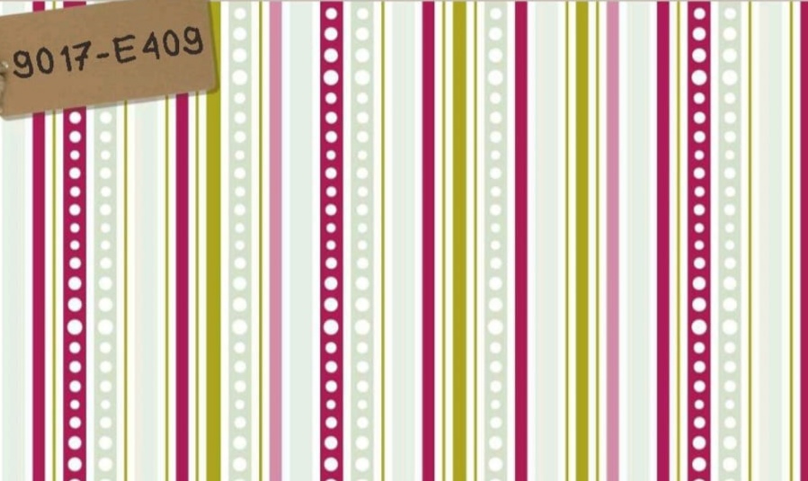 Tricoline 100% algodão, com riscas verde água, verde pistacho e rosa fucsia.