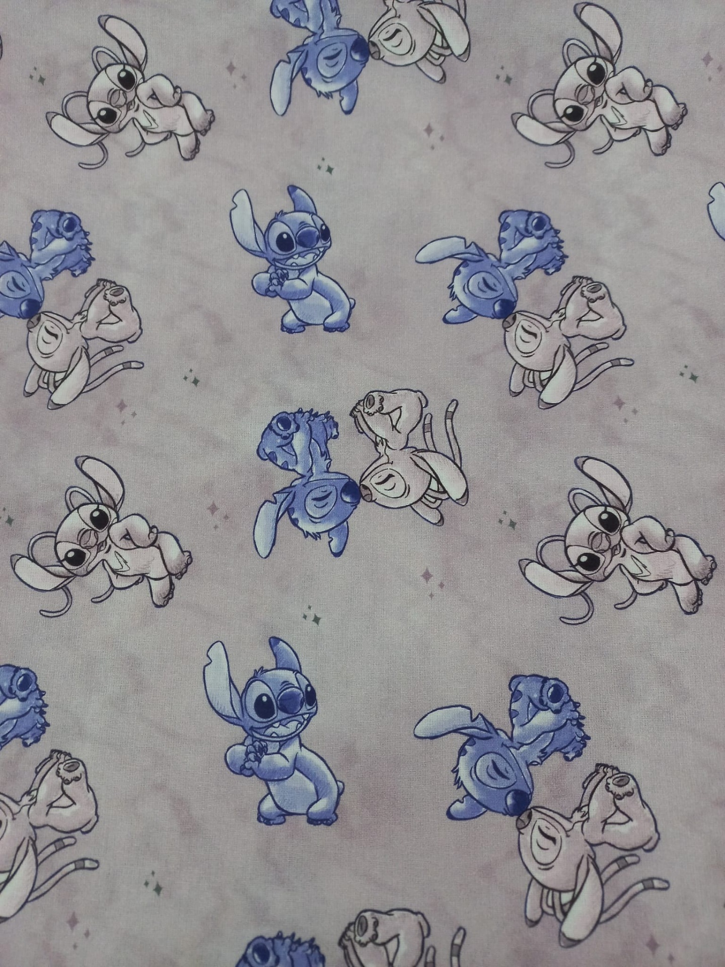 Tricoline 100% algodão com o Stich em fundo lilás.