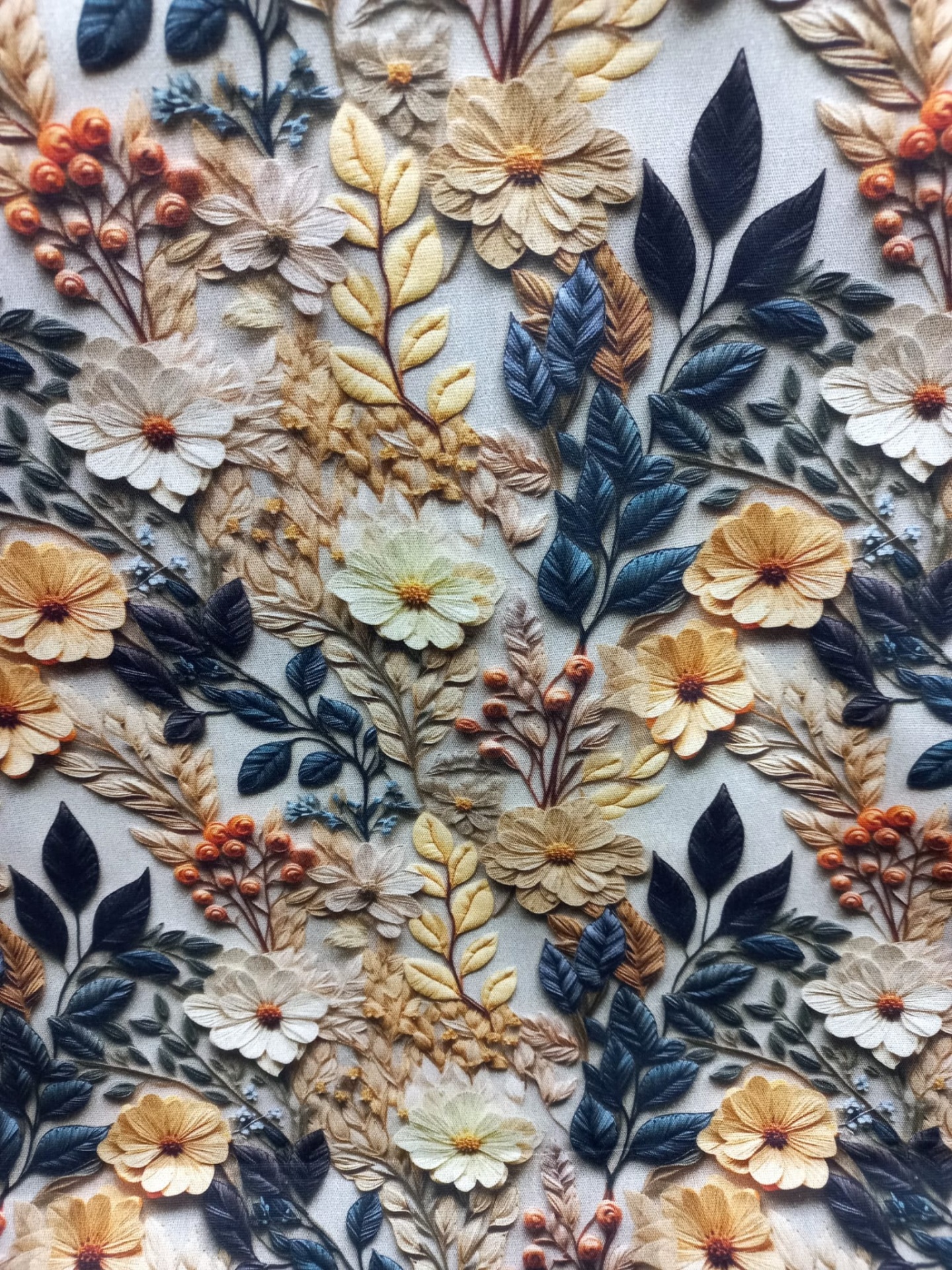 Tricoline Fabricart 100% algodão com motivos florais em 3D em tons Outonais.