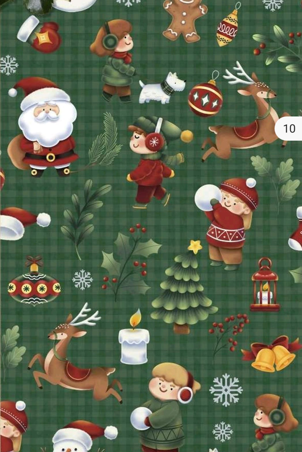 Popeline 100% algodão,com motivos Natalicíos em fundo verde.