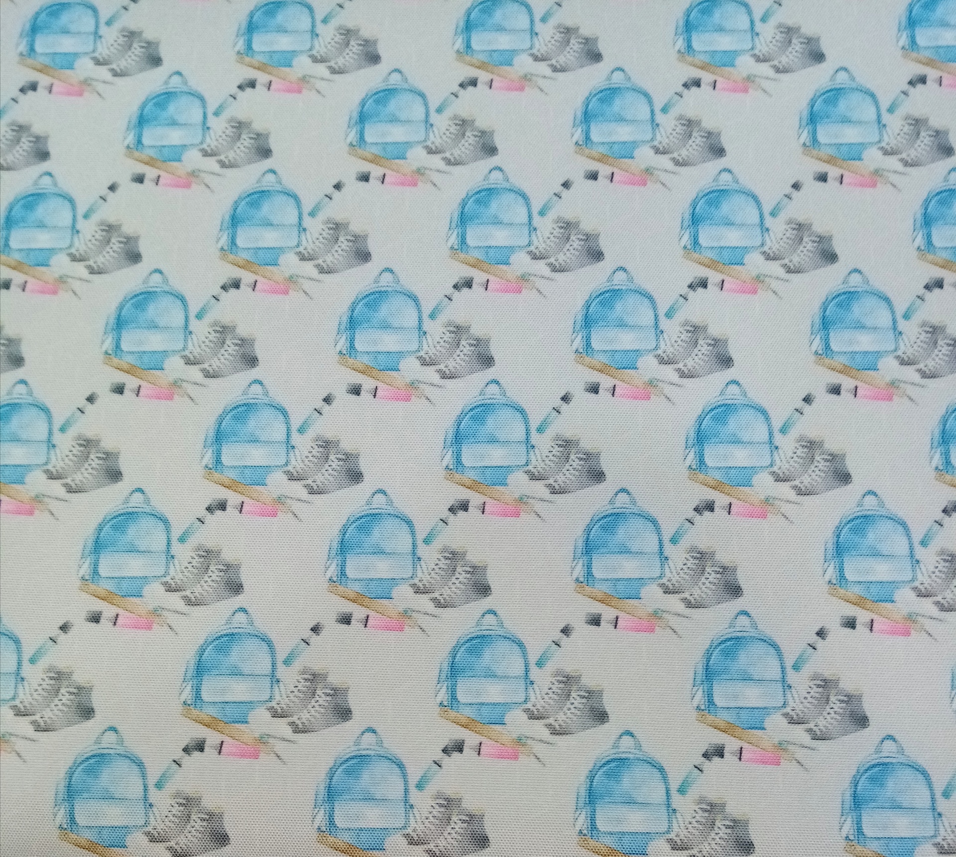 Tecido Canvas com mochilas azuis 0,09 € Partilhar Adicionar Contactar 200 unidades em stock Tecido Canvas 100% poliéster com mochilas azuis em fundo azul claro. Fácil de coser. 1.50m de largo. Ideal para mochilas, lancheiras, artesanato e artigos de cozinha. Corte mínimo 20cm .