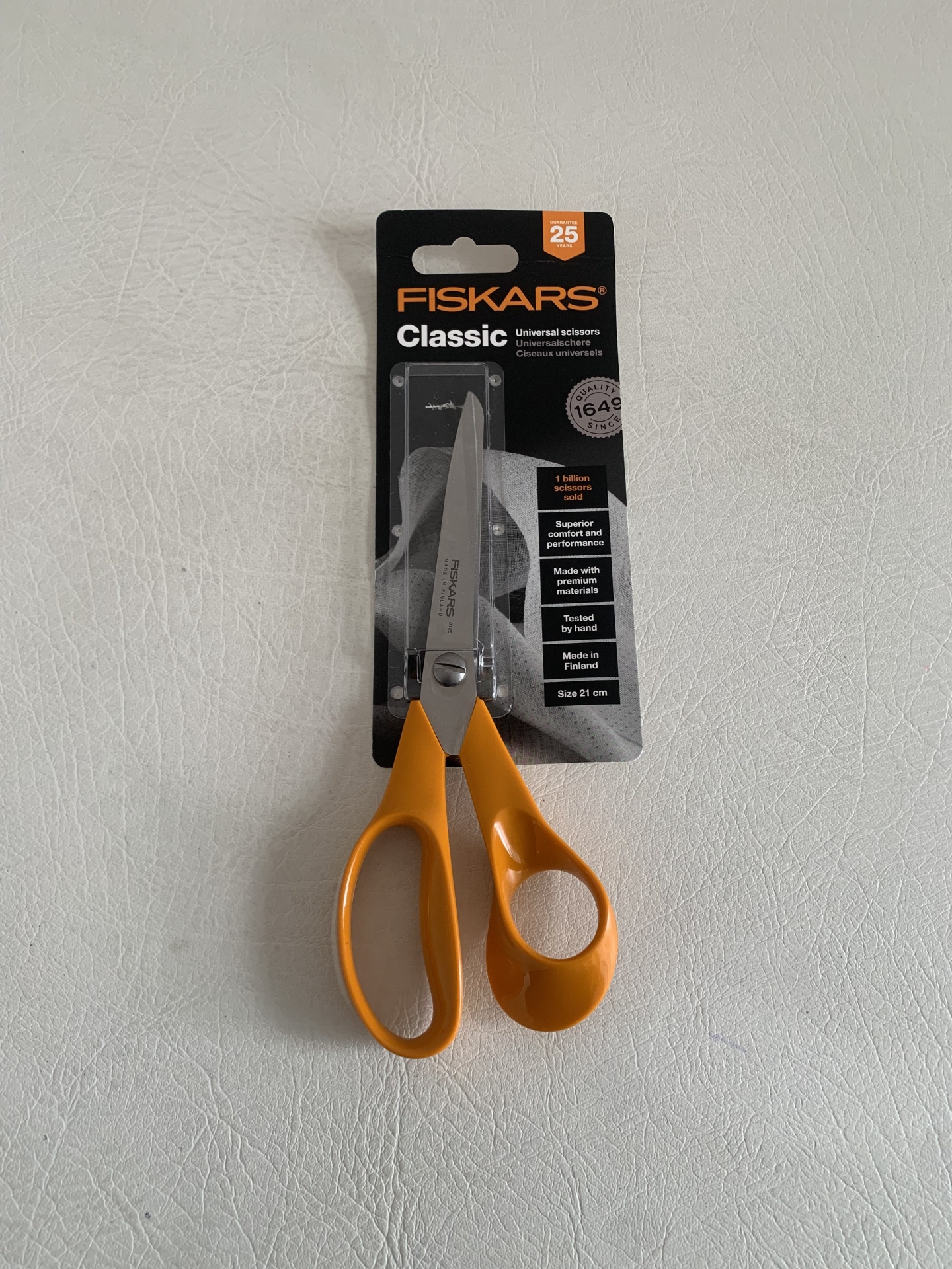 Tesoura Fiskars 21cm 33,00 € Partilhar O produto encontra-se sem stock. Tesoura de costura da marca Fiskars 21cm Ideal para costuras, bordados. Tags costurasbordados