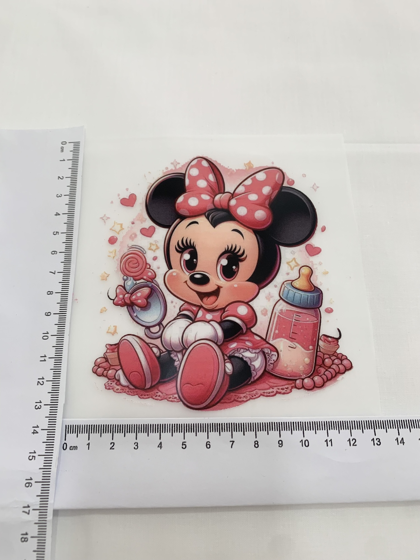 Colocar o transfer sobre o tecido e passar com ferro quente sem vapor durante 3 a 5 minutos para fixar bem ao tecido.