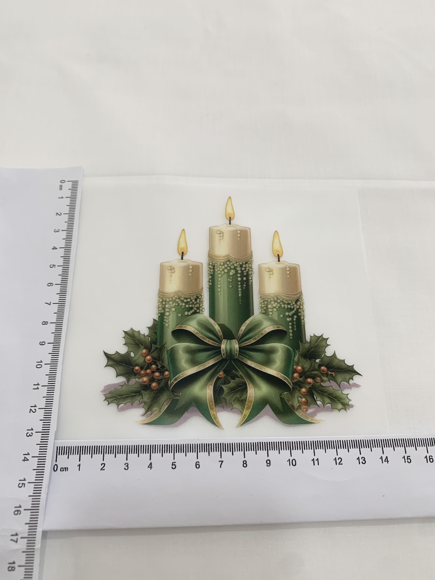Colocar o transfer sobre o tecido e passar com ferro quente sem vapor durante 3 a 5 minutos para fixar bem ao tecido.