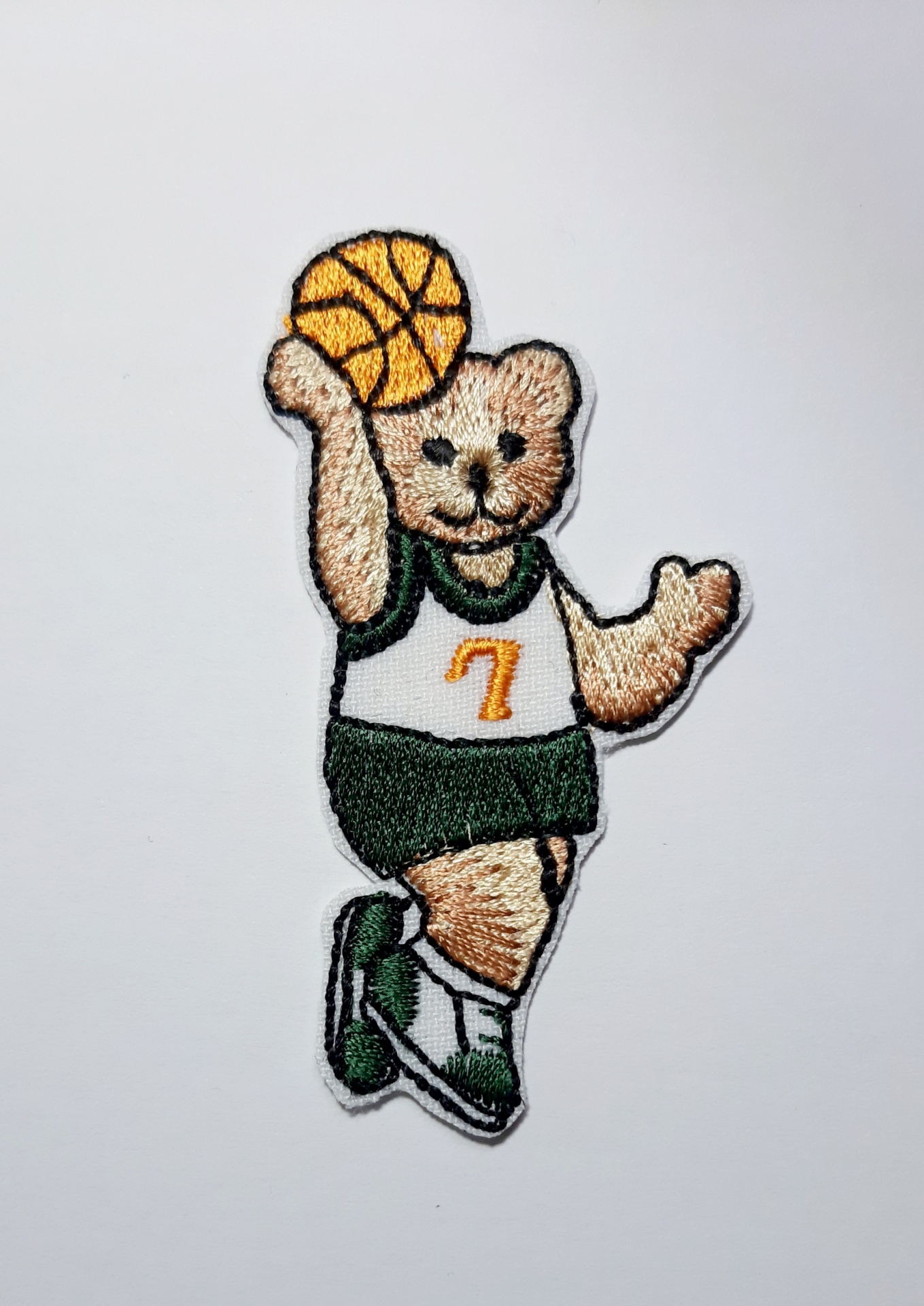 Ursinho jogador de basquetebol 2,30 € Partilhar Adicionar Contactar 2 unidades em stock Aplicação termoadesiva com ursinho a jogar basquetebol bordado 70x38mm