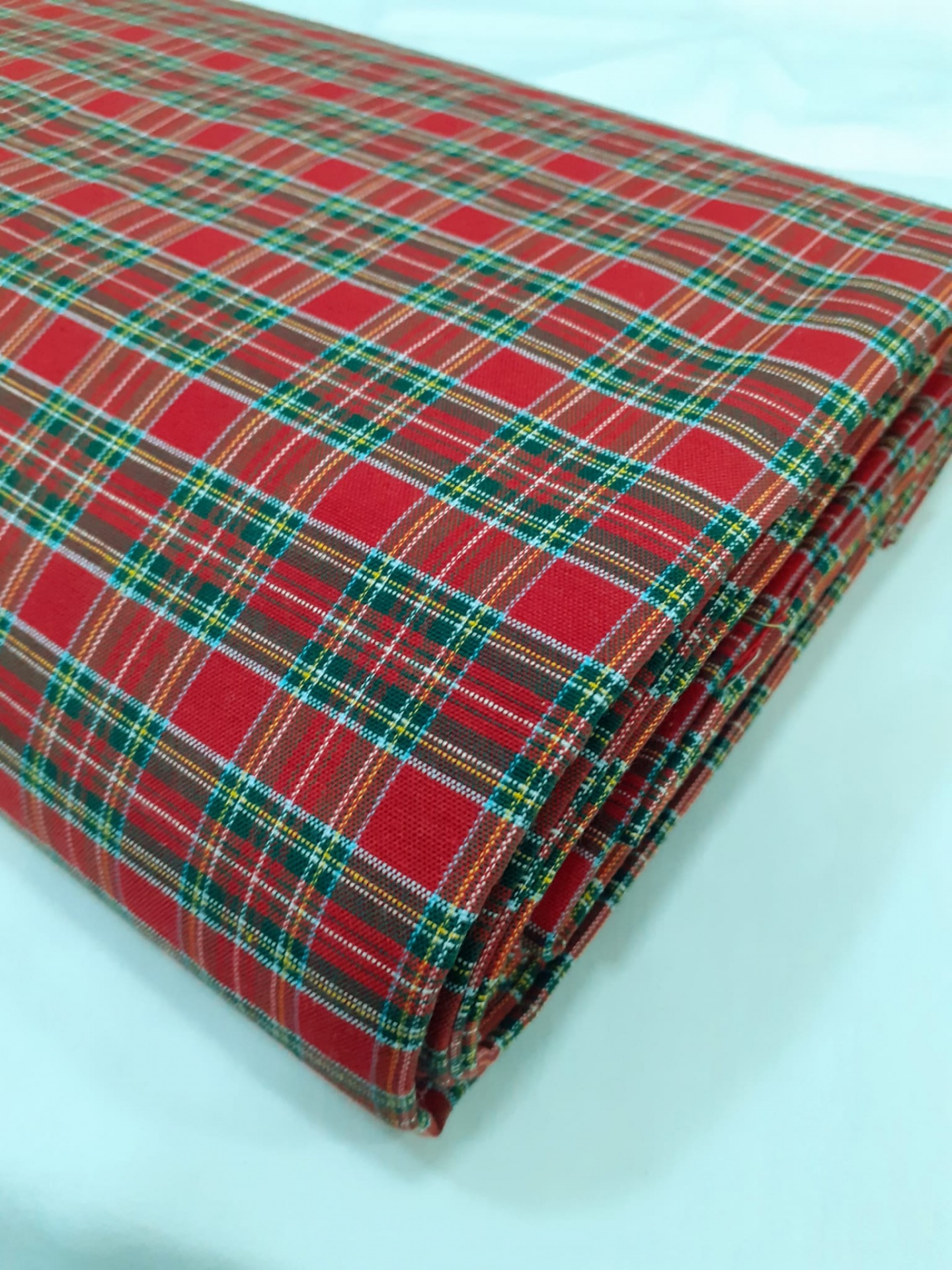 Tecido Vichy 60% algodão, 40% poliéster, é um padrão de tecido de lona de algodão xadrez em vermelho e verde.