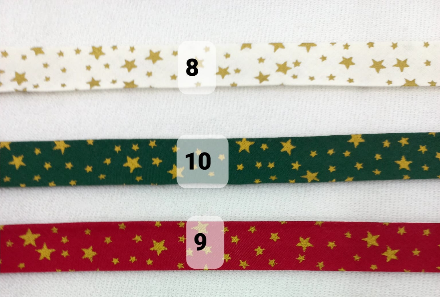 Viés com estrelinhas douradas 18mm 0,01 € Partilhar Número 8 9 10 Adicionar Contactar 2500 unidades em stock Fita viés algodão com estrelinhas douradas, em vermelho, verde e pérola. 18mm Ideal para remates e evitar bainhas Corte mínimo 20cm Tags Rematesbainhas