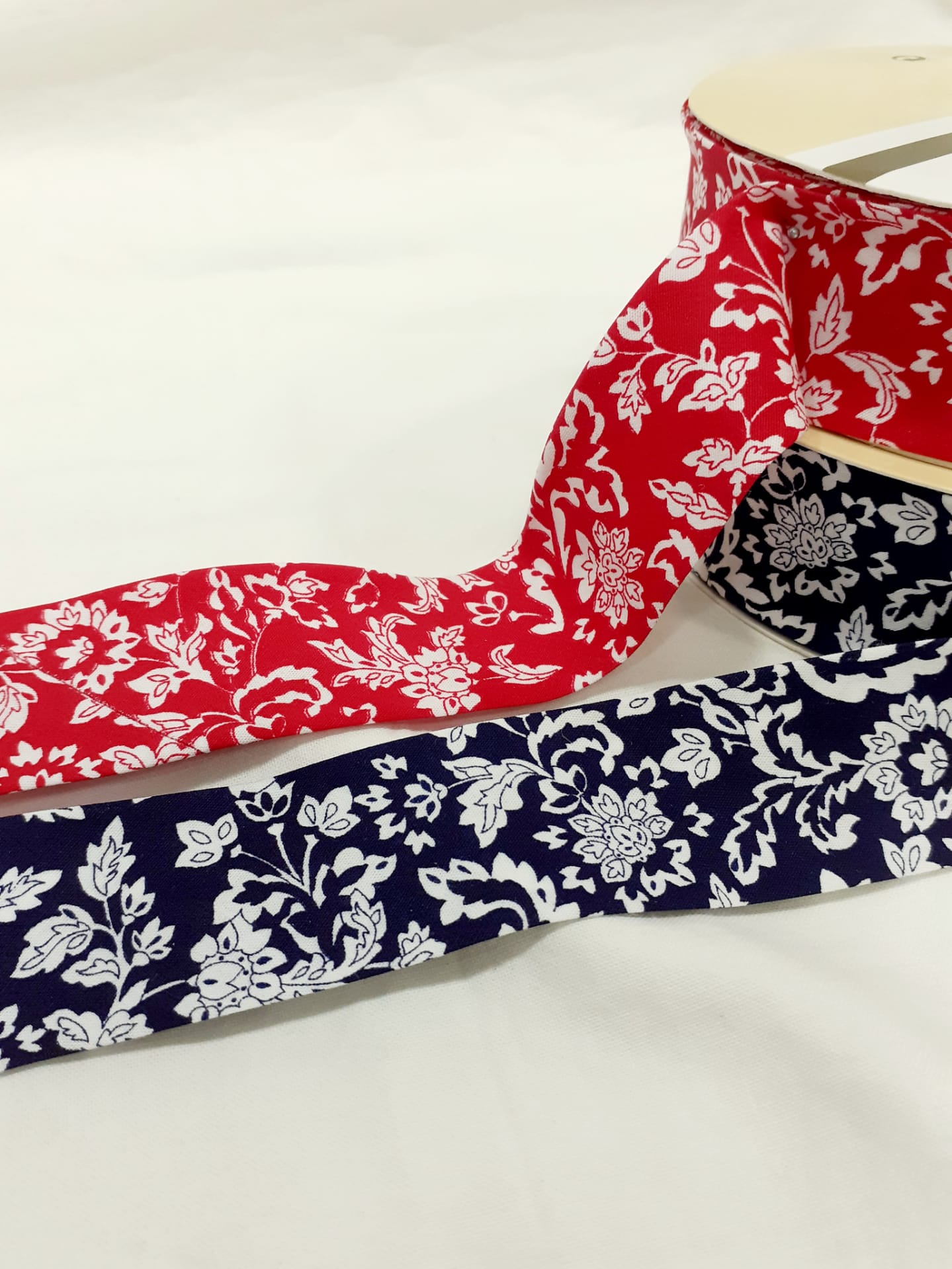 Viés com flores brancas 0,01 € Partilhar Cor Vermelho Azul Escuro Adicionar Contactar 1275 unidades em stock Fita de viés 100% algodão, com flores brancas em fundo vermelho ou azul escuro 30mm Corte mínimo 20cm