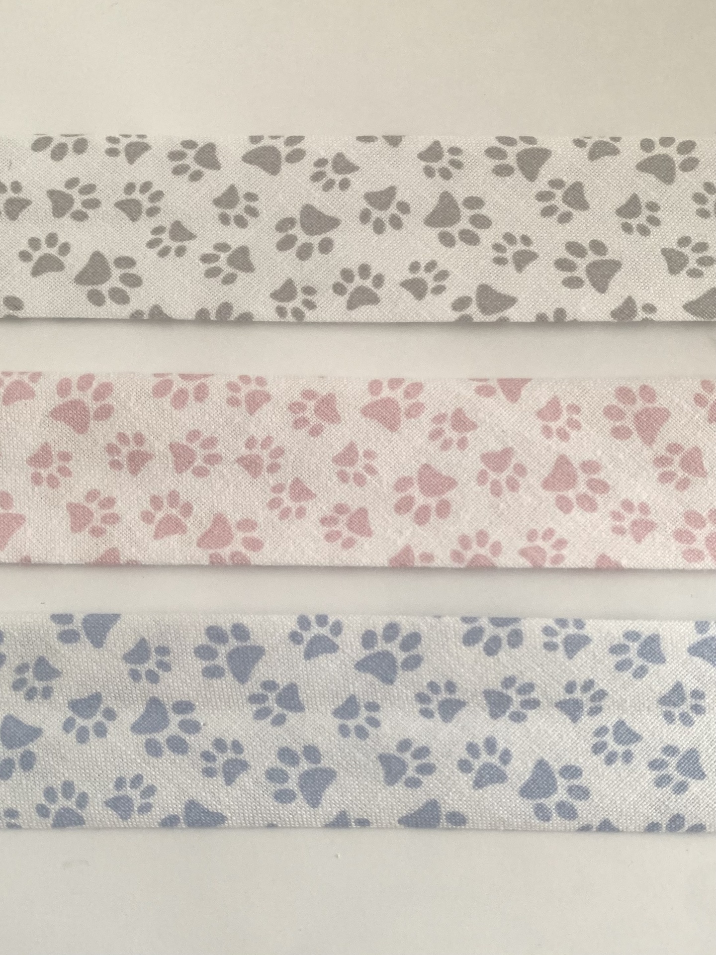 Viés com Patinhas 0,01 € Partilhar Cor rosa azul cinza Adicionar Contactar 2000 unidades em stock Fita de viés 100% algodão, com patinhas em rosa, azul ou cinza em fundo branco ideal para terminação de bainhas 25mm Corte mínimo 20cm Tags Bebébainhas
