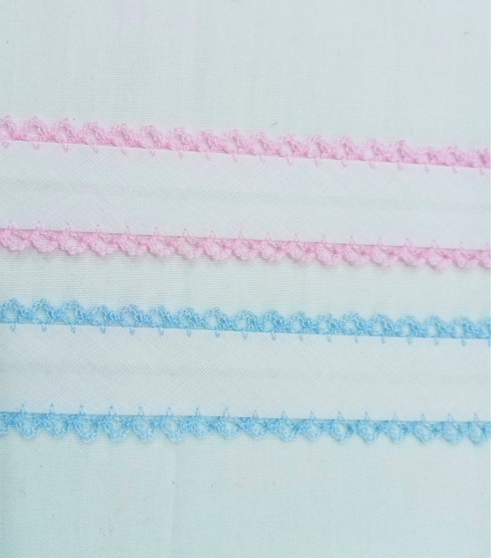 viés de algodão 18mm com picot 0,01 € Partilhar Cor rosa azul Adicionar Contactar ByFita de viés 100% algodão branco com picot rosa ou azul. 18mm Corte mínimo 20cm