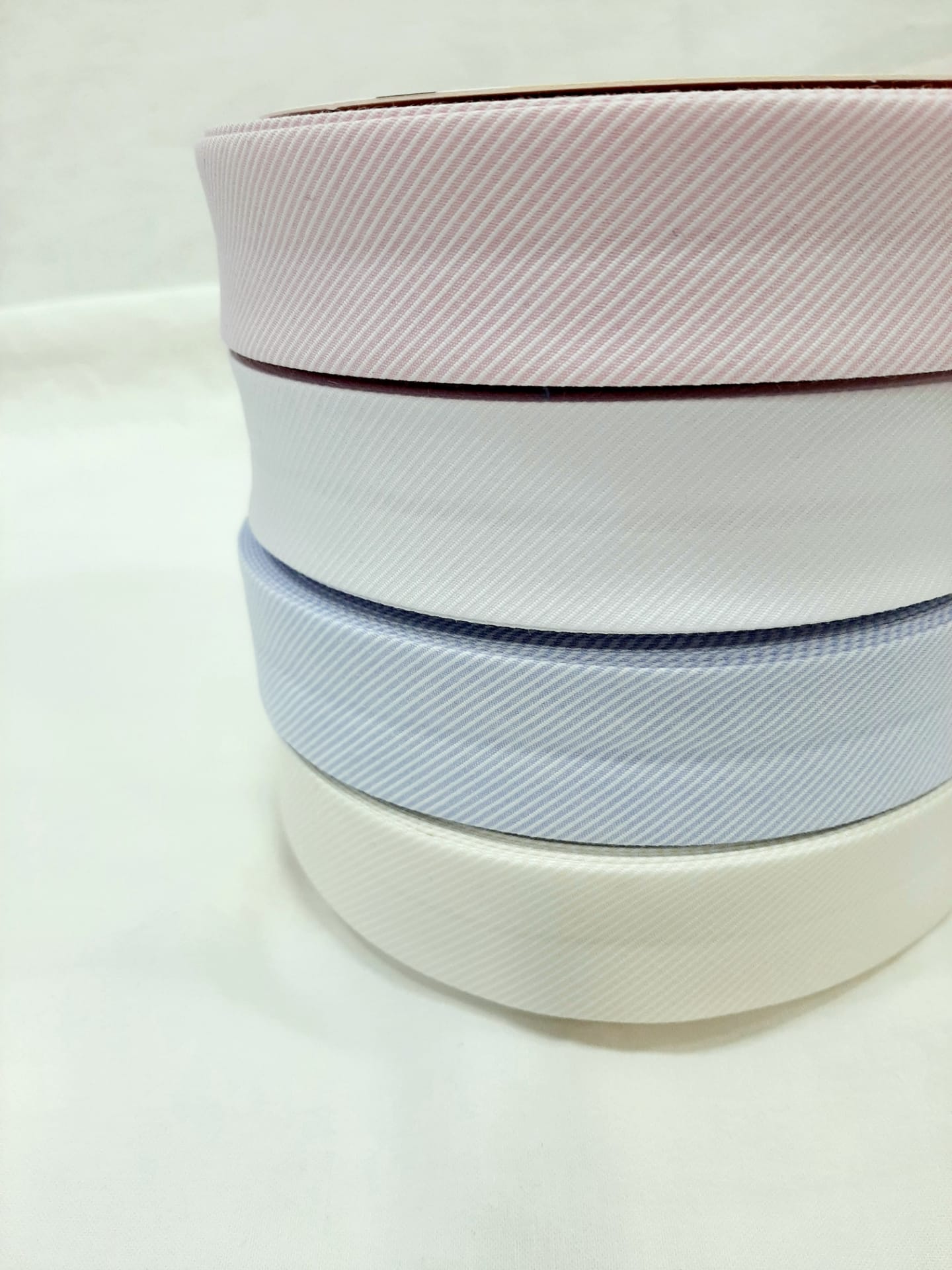 Viés de Fustão com Risquinhas Brancas 30mm 0,01 € Partilhar Cor Rosa Azul Bebé Branco Cru Adicionar Contactar 1500 unidades em stock Fita de viés de fustão 100% algodão, com risquinhas brancas em fundo rosa, branco, azul bebé e cru 30mm Ideal para remates e evitar bainhas Corte mínimo 20cm