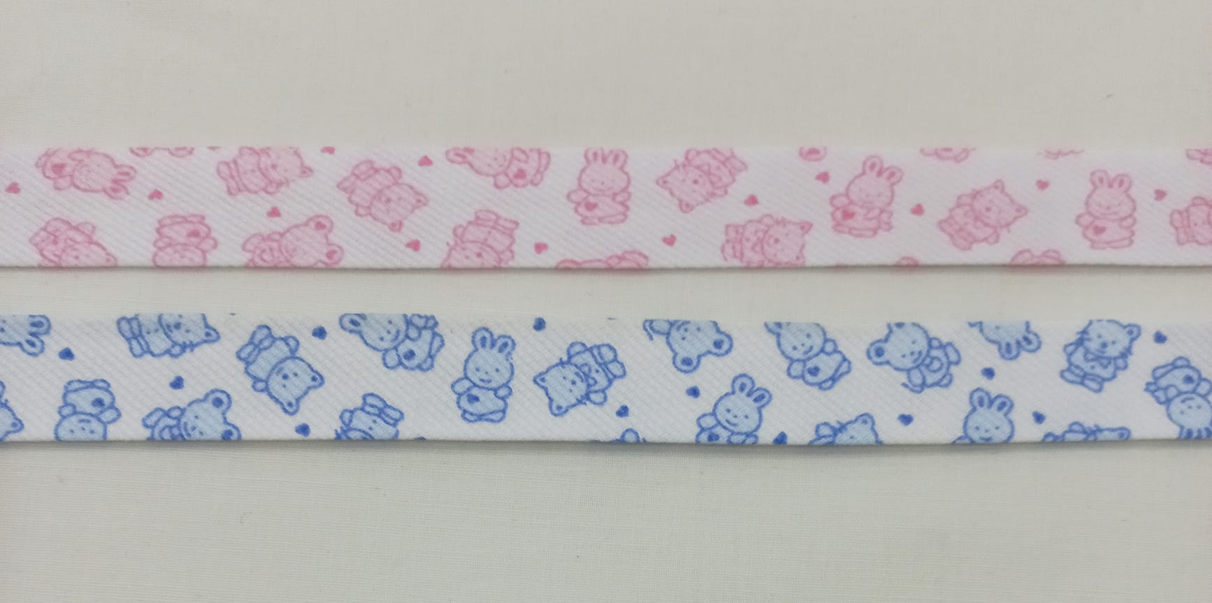 Viés de fustão com ursinhos e coelhinhos 0,01 € Partilhar Cor Azul Rosa Adicionar Contactar 650 unidades em stock Fita de viés de fustão 100% algodão com ursinhos e coelhinhos em azul e rosa em fundo branco. 18mm Ideal para remates e evitar bainhas Corte mínimo 20cm