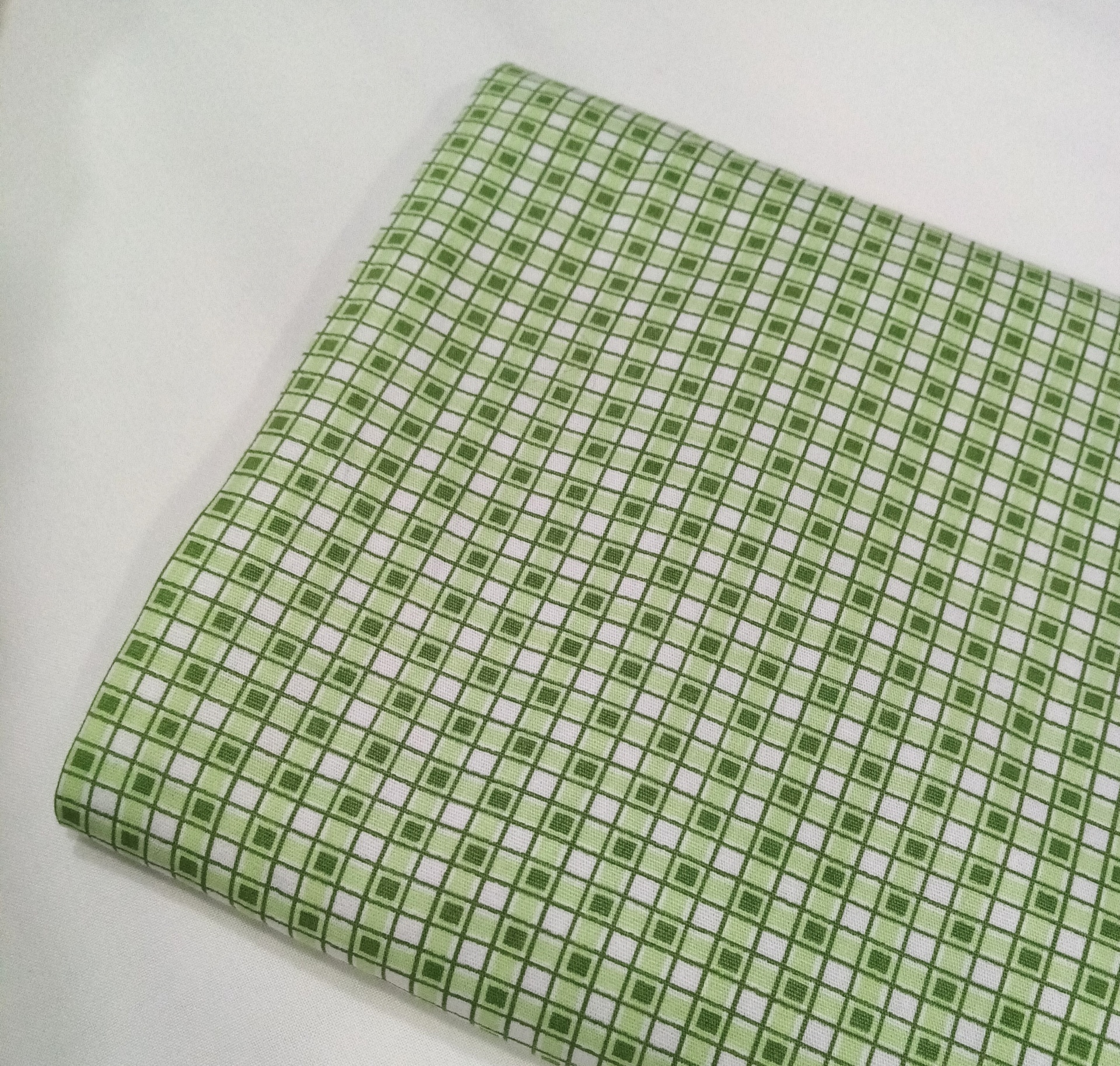 Tricoline Fuxicos e Fricotes 100% algodão em xadrez verde e branco.